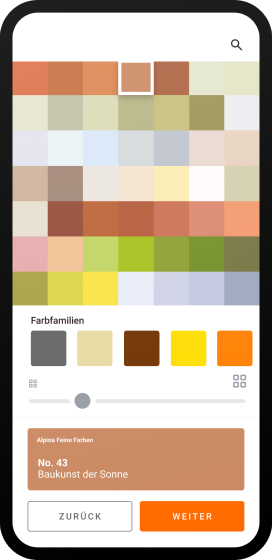 In der Alpina Farbraum App können Sie Ihre Alpina Lieblingsfarbtöne auf Ihre Einkaufliste setzen und darüber hinaus auch die benötigte Farbmenge berechnen. Je nach Produkt können Sie Ihre Farbtöne direkt über angeschlossene Handelspartner online kaufen oder mit der Händlersuche Ihren nächstgelegenen stationären Händler finden.