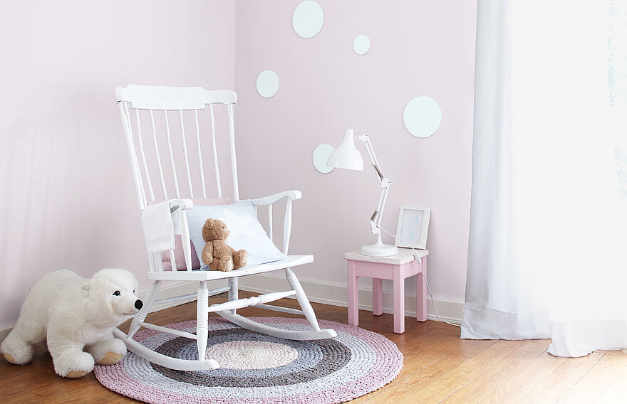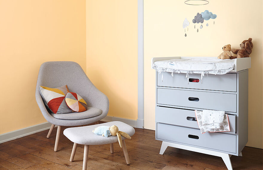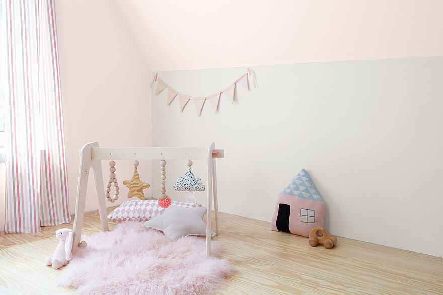 Vom Baby zum Kleinkind zum Schulkind – in jeder dieser Lebensphasen stehen andere Bedürfnisse und Entwicklungsschritte im Vordergrund. Farben und Farbharmonien, die an das Alter der Kinder angepasst sind, schaffen eine attraktive Atmosphäre im Kinderzimmer und unterstützen das Kind bei den altersabhängigen Entwicklungsschritten. Auf dieser Seite erfahren Sie, worauf Sie bei Wandfarben im Babyzimmer achten sollten.