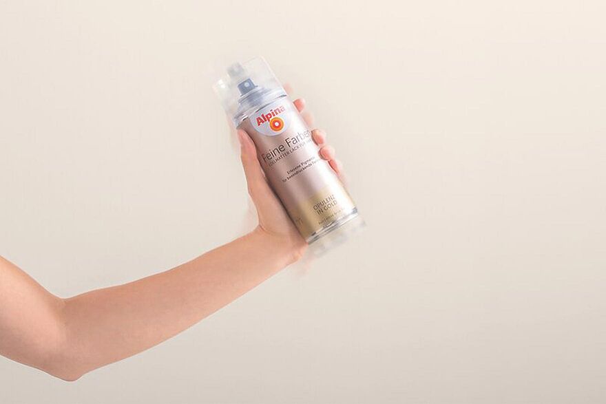 Vor der Anwendung schütteln Sie den Sprühlack in der Dose auf, damit sich die Farbpartikel gleichmäßig verteilen.