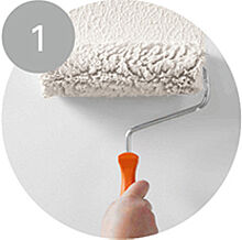 1. Der Farbrezepte KREATIV-PUTZ ist roll- und streichfähig. Farbe vor Gebrauch gut umrühren. Rollen Sie den KREATIV-PUTZ mit dem angefeuchteten Alpina Roller zunächst auf ca. 2 m² satt auf. Je mehr Material Sie auftragen, desto stärkere Strukturen entstehen.