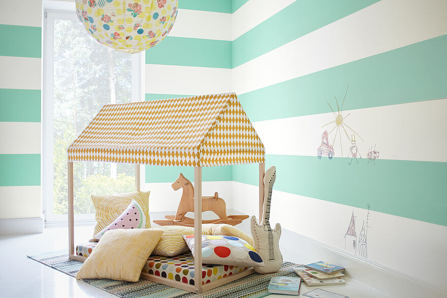 Vom Baby zum Kleinkind zum Schulkind – in jeder dieser Lebensphasen stehen andere Bedürfnisse und Entwicklungsschritte im Vordergrund. Farben und Farbharmonien, die an das Alter der Kinder angepasst sind, schaffen eine attraktive Atmosphäre im Kinderzimmer und unterstützen das Kind bei den altersabhängigen Entwicklungsschritten. Auf dieser Seite erfahren Sie, worauf Sie bei Wandfarben im Kleinkindzimmer achten sollten.