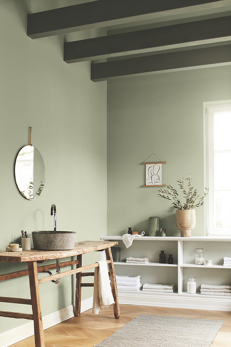 Helle Grüntöne stehen für eine tiefe Entspannung, sie sind leicht, besinnlich und achtsam. Leise und schlicht ist ein Jade-Grün, wie die Nuance „Grüne Poesie“ der Alpina Farbrezepte. Es ist die Farbe des asiatischen Zens, des Einklangs von Körper und Geist.