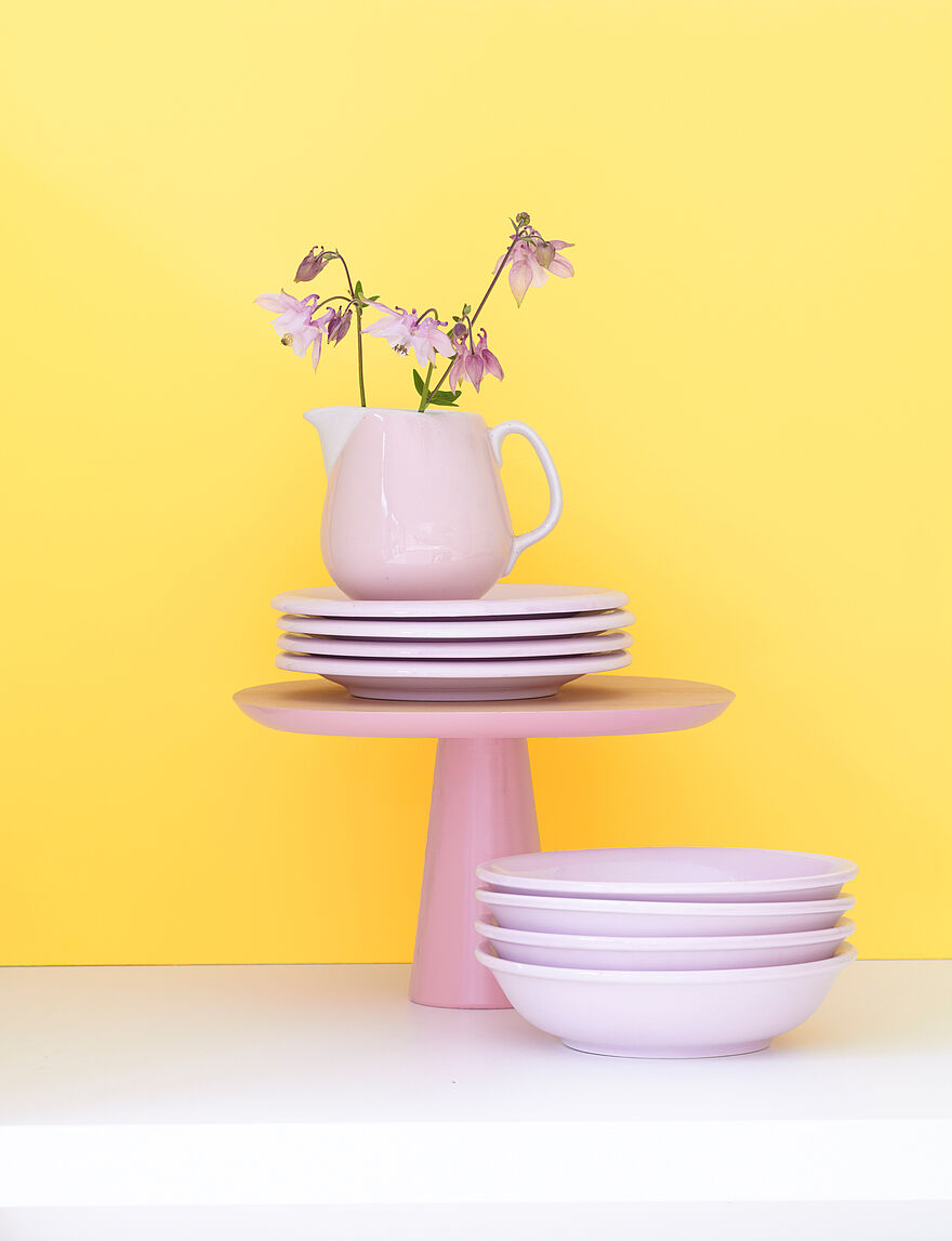 Streichen Sie Gelb zusammen mit Rot, Orange oder Pink, kann die Raumstimmung von warm über anregend bis exotisch changieren. Hierbei gilt jedoch auch: Vorsicht vor zu intensiven Tönen. Sie können einen Bonbon-Effekt erzielen und damit ermüden. Besonders fröhlich und exotisch wird Gelb in Kombination mit Rosé oder Pink. Für eine harmonische Raumwirkung sollte aber mindestens ein heller Pastellton dabei sein.