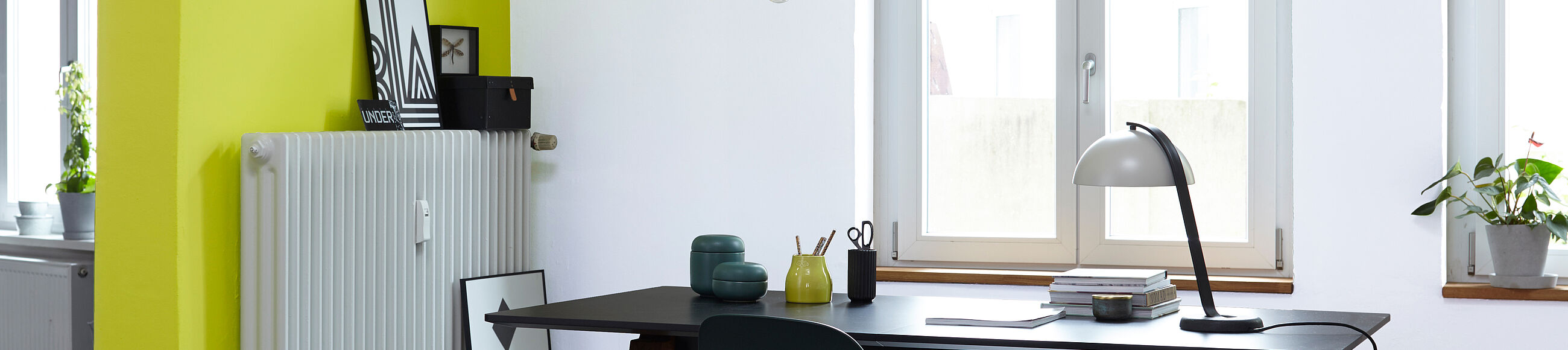 Farbe und Licht beeinflussen einander und auch die Art von Strahlern, Deckenlampen und Wandbeleuchtung sind entscheidend: Indem Farbe Licht absorbiert, verändert sie sich im Auge des Betrachters. Gleichzeitig färbt die Farbe das Licht ein und beeinflusst so die Stimmung im Raum. Daher ist es bei der Farbauswahl wichtig, die Lichtverhältnisse jedes Zimmers zu berücksichtigen. Halten Sie Farbkarten immer direkt an die betreffende Wand – und zwar sowohl bei Tages- als auch bei Kunstlicht, sowohl in der Nähe von Fenstern und Leuchten als auch in einer dunkleren Ecke. So sehen Sie, wie sich der Farbton bei unterschiedlichem Lichteinfall verhält.