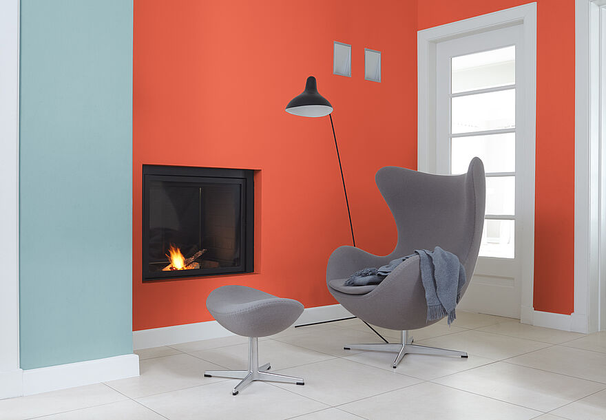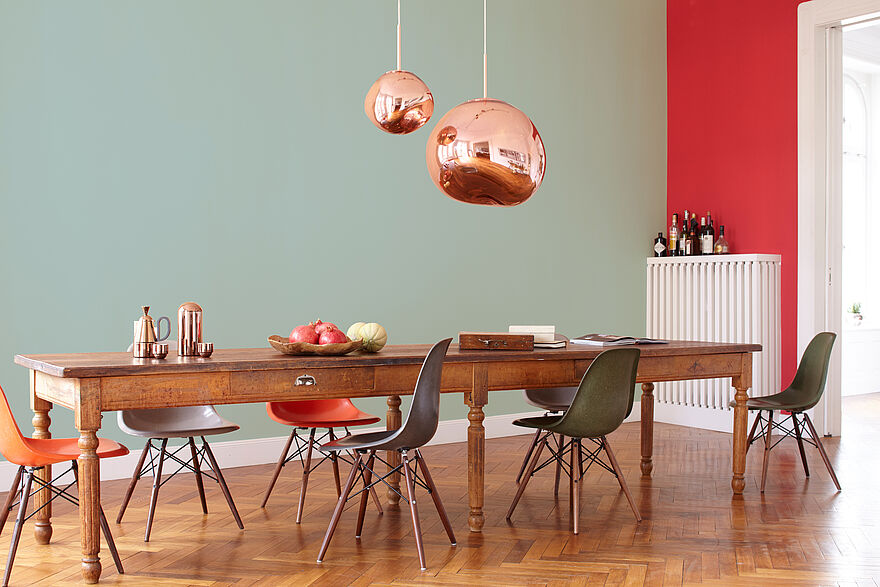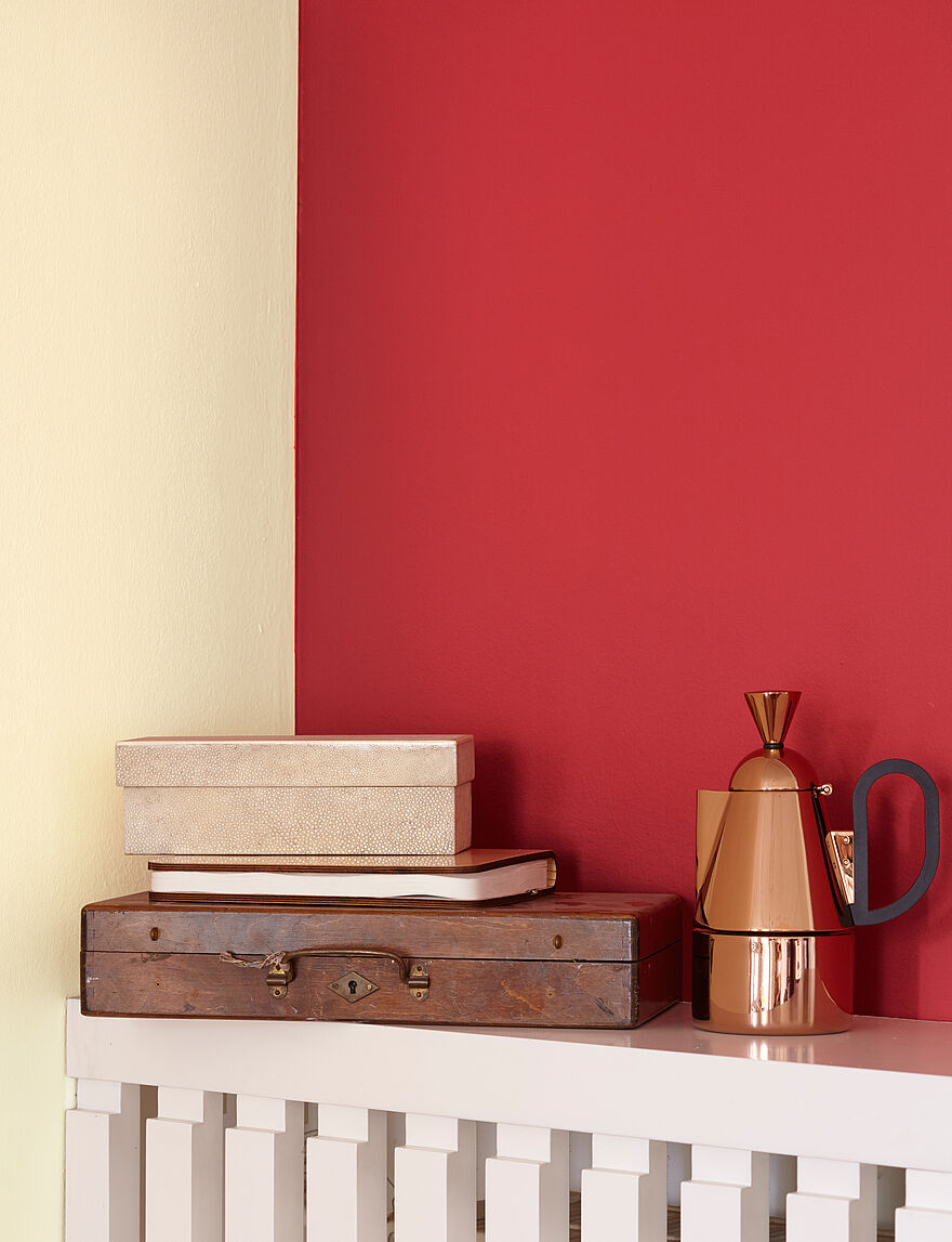 Rot ist immer ein Statement – nichts für schüchterne Gemüter. Es eignet sich gut, um starke Akzente zu setzen. Aber am besten auf kleineren Flächen. Da von Rot eine Signalwirkung ausgeht, kann es als Wandfarbe auf größeren Flächen bedrängend wirken. Streichen Sie Rot daher mit Bedacht! Wer sich Gemütlichkeit im Raum wünscht, kann eine blutrote Wand mit natürlichen Materialien wie Fell, Leder oder Sisal ausbalancieren. Ein moderner, urbaner, minimalistischer Einrichtungsstil lässt sich durch opulente Möbelstücke unterstreichen.