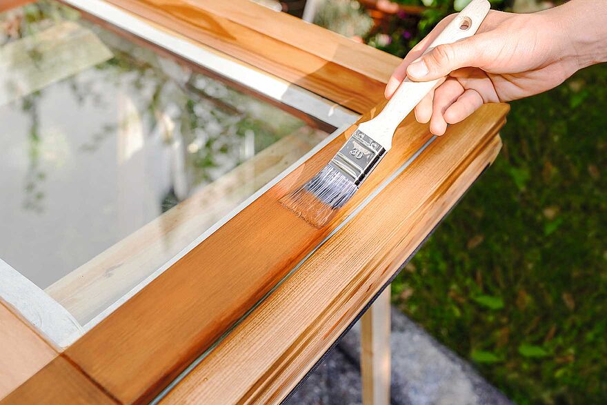 So lassen sich in wenigen Schritten Fenster und Türen wetterfest lasieren.