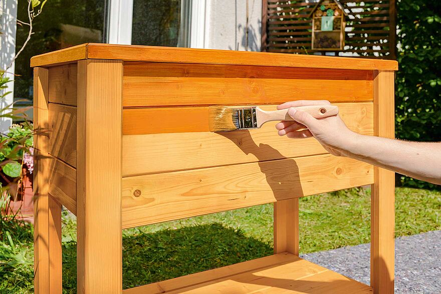 Wir zeigen Ihnen am Beispiel eines Hochbeets, wie Sie ihr Holz wetterfest machen und mit der richtigen Lasur vor den verschiedensten Gefahren durch Feuchtigkeit, wie z.B. Schimmel und andere Umwelteinflüsse schützen können.