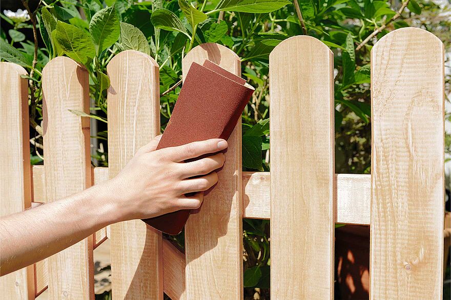 Um rohes, unbehandeltes Holz im Außenbereich ausreichend gegen Pilze, Fäulnis und Bläue zu schützen, das Holz mit Alpina Holzschutz-Grund grundieren. Nach Trocknung die Oberfläche mit feinem Schleifpapier (120er Körnung) glätten.