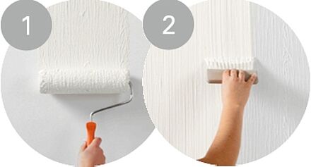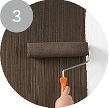 3. Rollen Sie nach Trocknung von Farbrezepte LINIEN-EFFEKT METALL-EFFEKT mit dem angefeuchteten Alpina Roller satt auf. Arbeiten Sie hierbei in Bahnen von 50 - 100 cm.