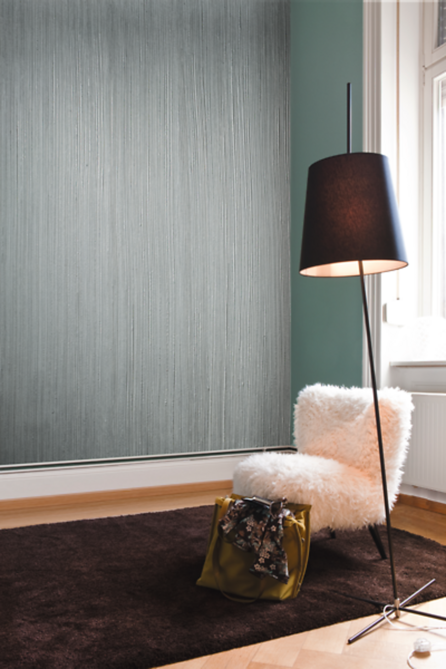 Besonders gut eignen sich strukturierte Oberflächen, da hier der metallische Glanz am besten zur Geltung kommt. Ideal zum Veredeln mit den Metallfarben ist zum Beispiel der Effektfarbe Farbrezepte LINIEN-EFFEKT. Die Wand erhält dann eine natürlich schimmernde Oberfläche, die den lebendigen Charakter der Linien unterstreicht und glänzende Farbreflexe setzt.