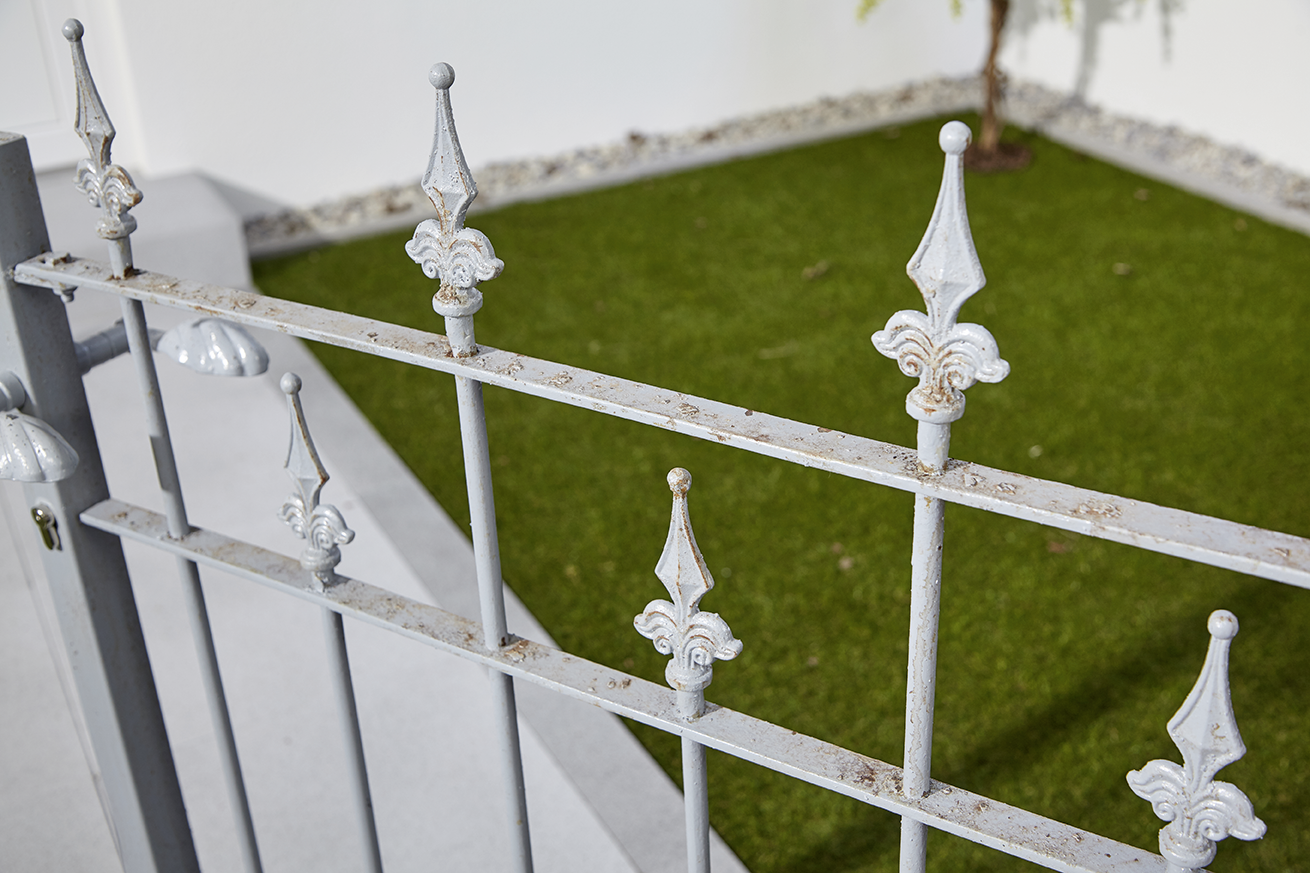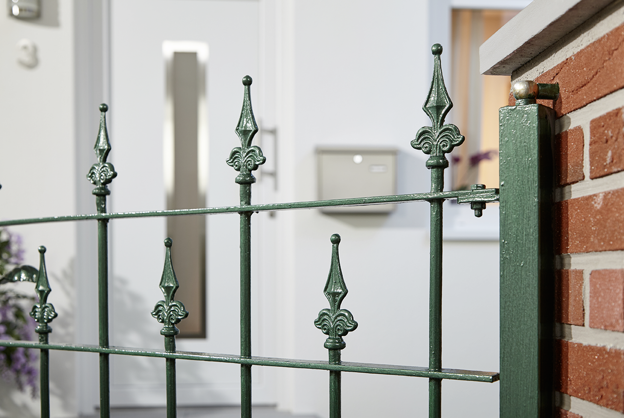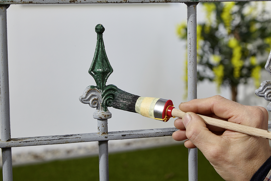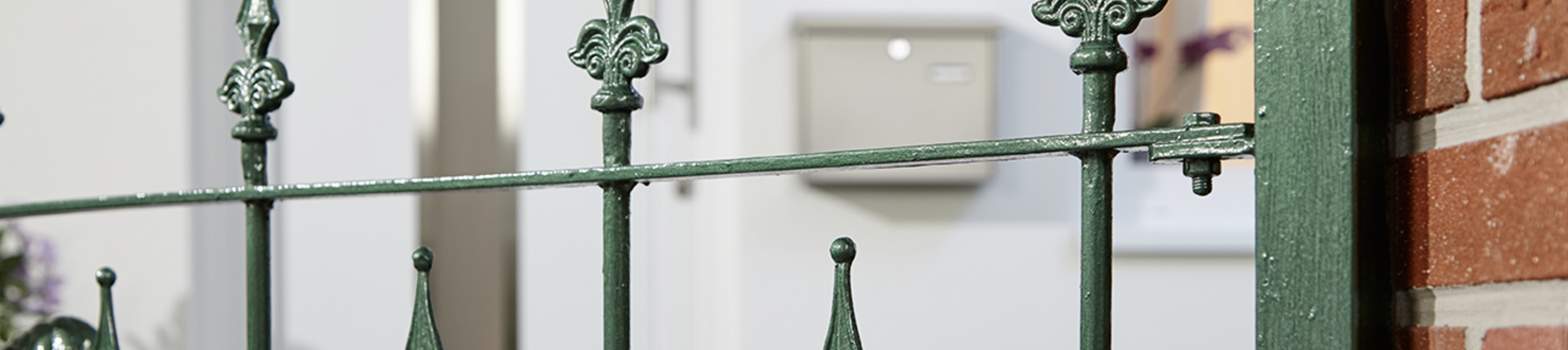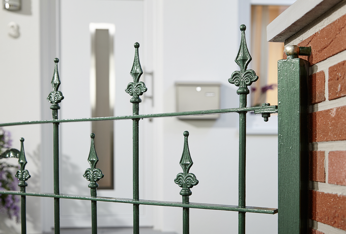 Nun kann es losgehen: Streichen Sie den Metallzaun mit einer satten Schicht Alpina Anti-Rost Metallschutz-Lack.