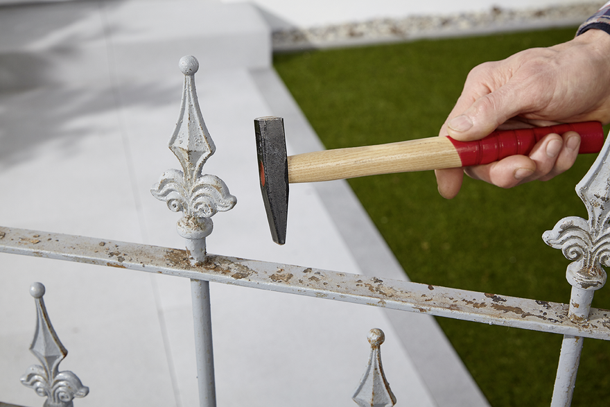 Für einen effektiven Metallschutz müssen Sie zuerst alle Rostnester mit einem Hammer aufschlagen.