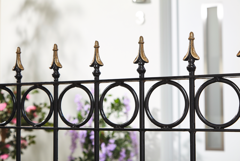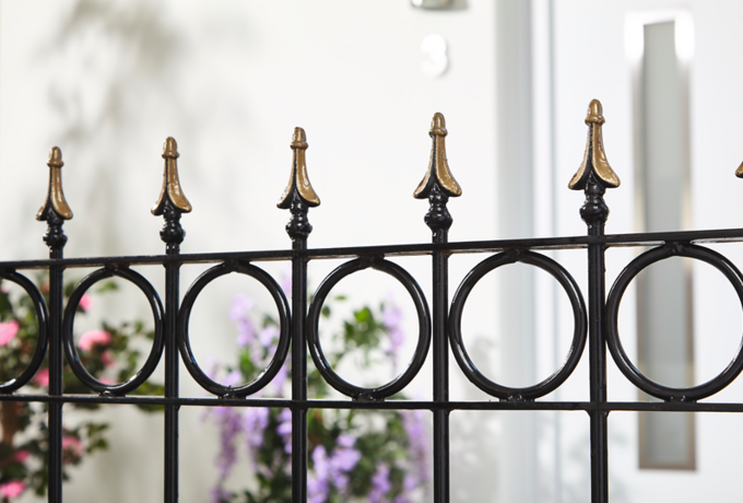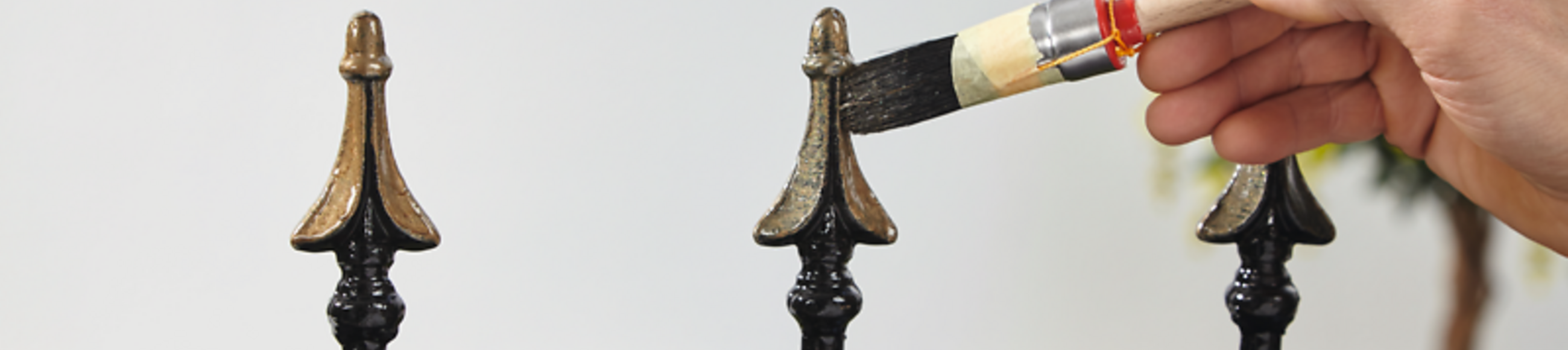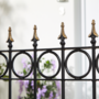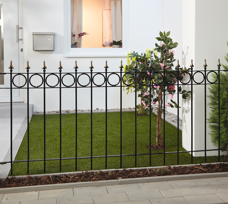 Sie können einen zweiten Lack-Farbton wie z. B. Gold auf ausgewählte Zaunelemente aus Metall aufbringen. Gehen Sie hierfür wie oben beschrieben vor. Nutzen Sie aber einen neuen oder gereinigten und gut durchgetrockneten Pinsel. Den zweiten Farbton können Sie je nach persönlicher Vorliebe ein oder zwei Mal streichen.