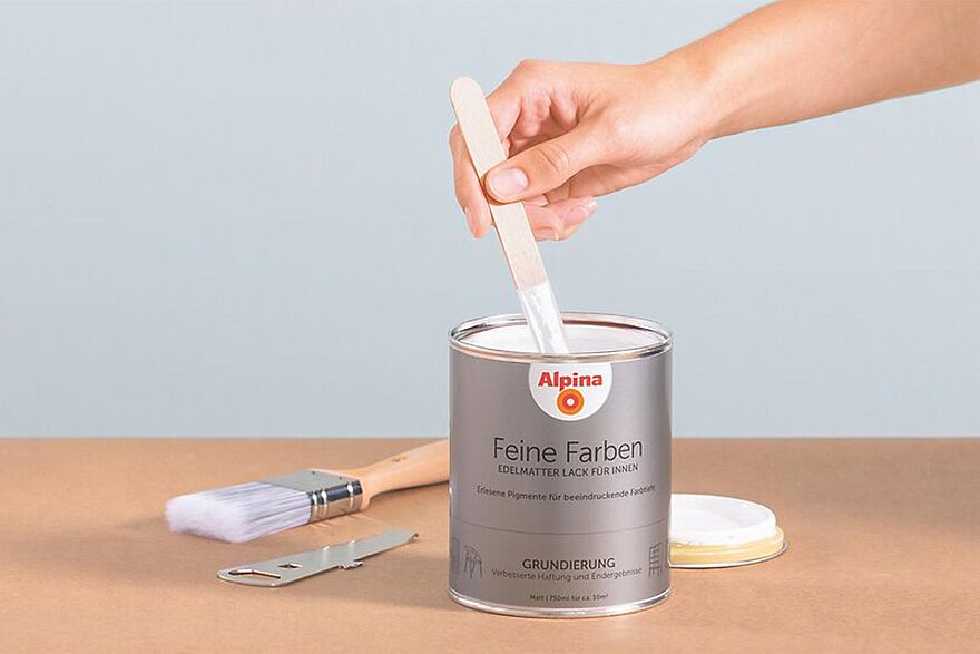 Rühren Sie die Grundierung vor der Anwendung mit einem Rührholz sorgfältig auf. So können sich am Boden der Dose abgesetzte Pigmente und Füllstoffe wieder gleichmäßig verteilen und ihre Wirkung voll entfalten.
