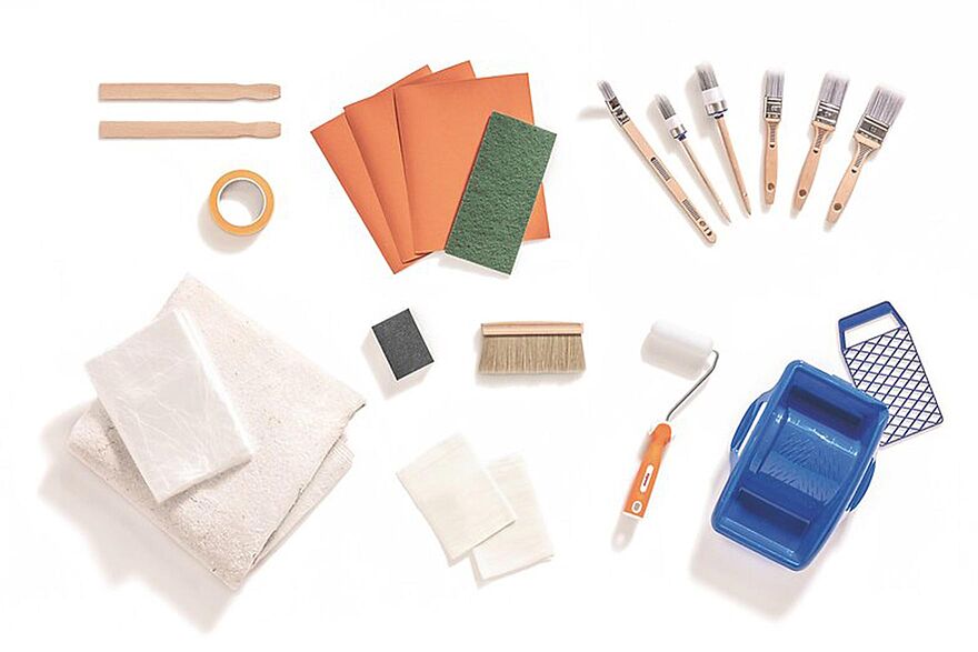 Beim Lackieren von Möbeln mit Buntlack für innen ist die richtige Werkzeugauswahl von entscheidender Bedeutung für gelungene Ergebnisse. Welche Werkzeuge Sie idealerweise verwenden, haben wir in einer kurzen Übersicht für Sie zusammengestellt. Diese Werkzeuge und Materialien sollten Sie – je nach zu lackierendem Möbelstück – bereithalten: