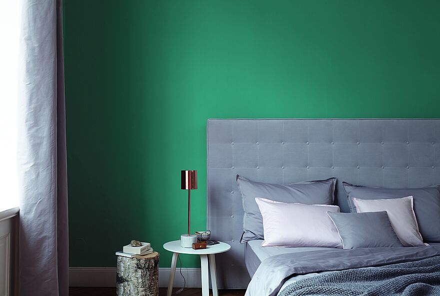 Für alle, die Blaugrüntöne lieben, denen Türkis allerdings zu hemdsärmelig daherkommt, ist Petrol die ideale Wahl als Innenfarbe. Mit dunklem und gesättigtem Blaugrün streicht man eine gute Portion Mystik und Geheimnis an die Wand, durch die jeder Raum an Intimität, Glamour und Charakter gewinnt.
