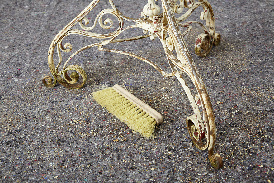 Fegen Sie vor dem Lackieren das Objekt gründlich mit einem Handfeger ab.