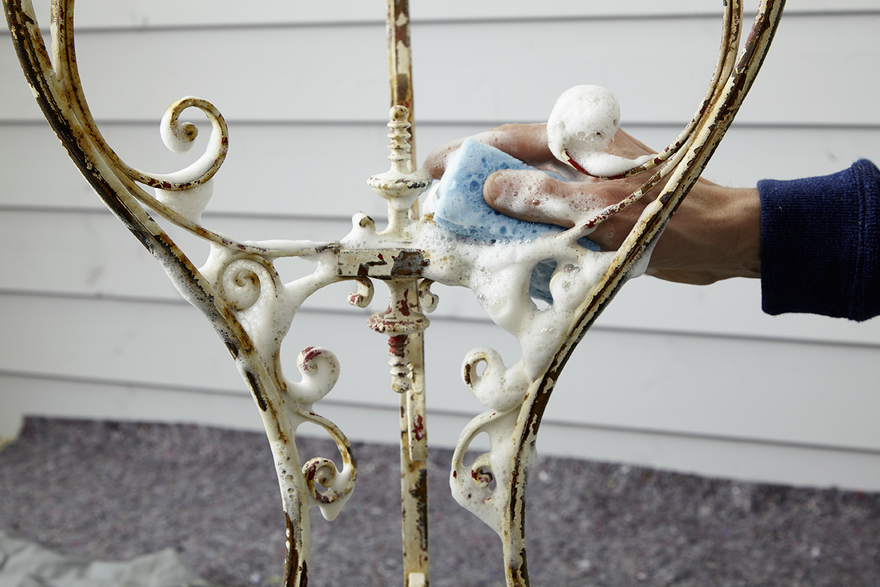 Anschließend waschen Sie etwaige Verschmutzungen zuerst mit Seifenlauge und dann mit klarem Wasser ab. Lassen Sie das Objekt vor dem Lackieren mit dem Sprühlack gut trocknen, denn der Alpina Anti-Rost Metallschutz-Lack haftet nur auf trocknen Untergründen.