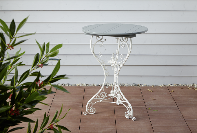 Vorher-Nacher-Vergleich des mit Sprühlack verschönerten Gartentischs
