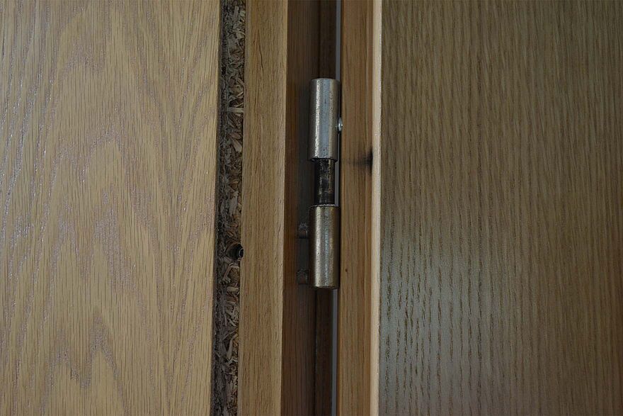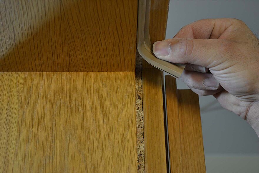Liegt die Tür direkt im Falz auf, muss der Altanstrich zumindest in diesen Bereichen entfernt werden. Arbeiten Sie dazu mit einer Ziehklinge oder einem scharfen Stechbeitel, mit dem sie in ziehender Bewegung und in mehreren Arbeitsgängen den Altanstrich aus dem Falz entfernen. Alternativ kann der Altanstrich auch mit einem Schleifgerät (Dreiecksschleifer) abgeschliffen werden.