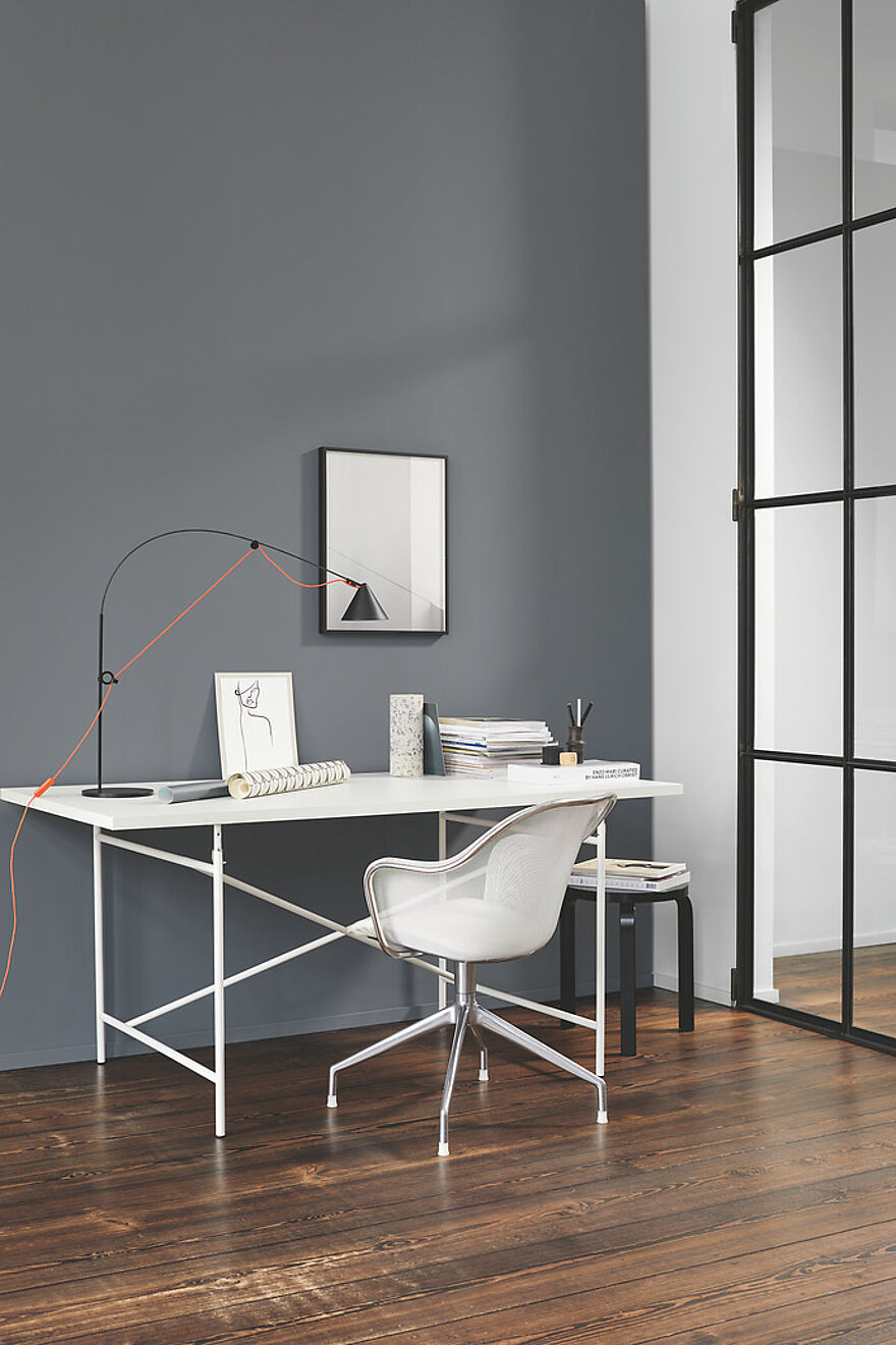 Grüne Wandfarbe im Büro kann dabei helfen, sich besser zu konzentrieren. Auch Grau-Töne haben eine beruhigende Wirkung – sie sind zurückhaltend, lenken nicht ab und können somit helfen, die Konzentration zu steigern.