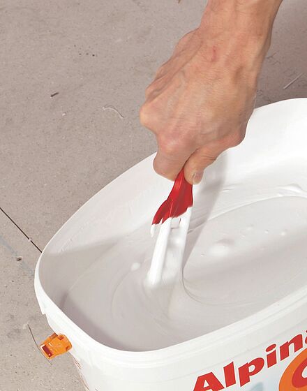 Dispersionsfarben können grundsätzlich zurückhaltend mit Wasser verdünnt werden. Alle Wandfarben von Alpina sind bereits verarbeitungsfertig. Das heißt, dass es nicht nötig ist, die Farbe mit Wasser zu verdünnen, und Sie sofort anfangen können zu streichen.