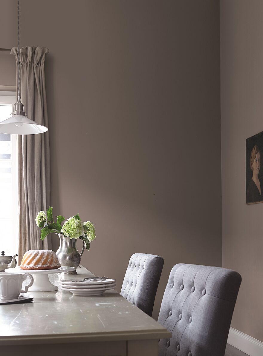 Der gedeckte Braunton der Nuance No. 05, DICHTER DER ERDE, aus der Alpina Feine Farben Kollektion ist erdig, wirkt absolut unprätentiös und schafft ein Gefühl von Nähe. Damit ist der Farbton ein wahrlich angenehmer Wohnpartner und Winter-Farbton, der kräftig und markant auftritt, ohne dabei dominant zu sein. Darüber hinaus zeichnet sich die stilvoll präsente Farbe durch einen eleganten und sogar luxuriösen Touch aus.