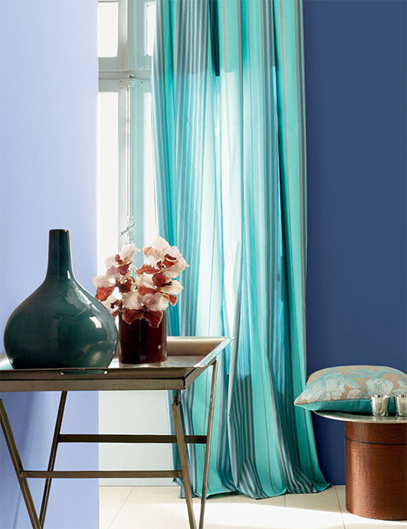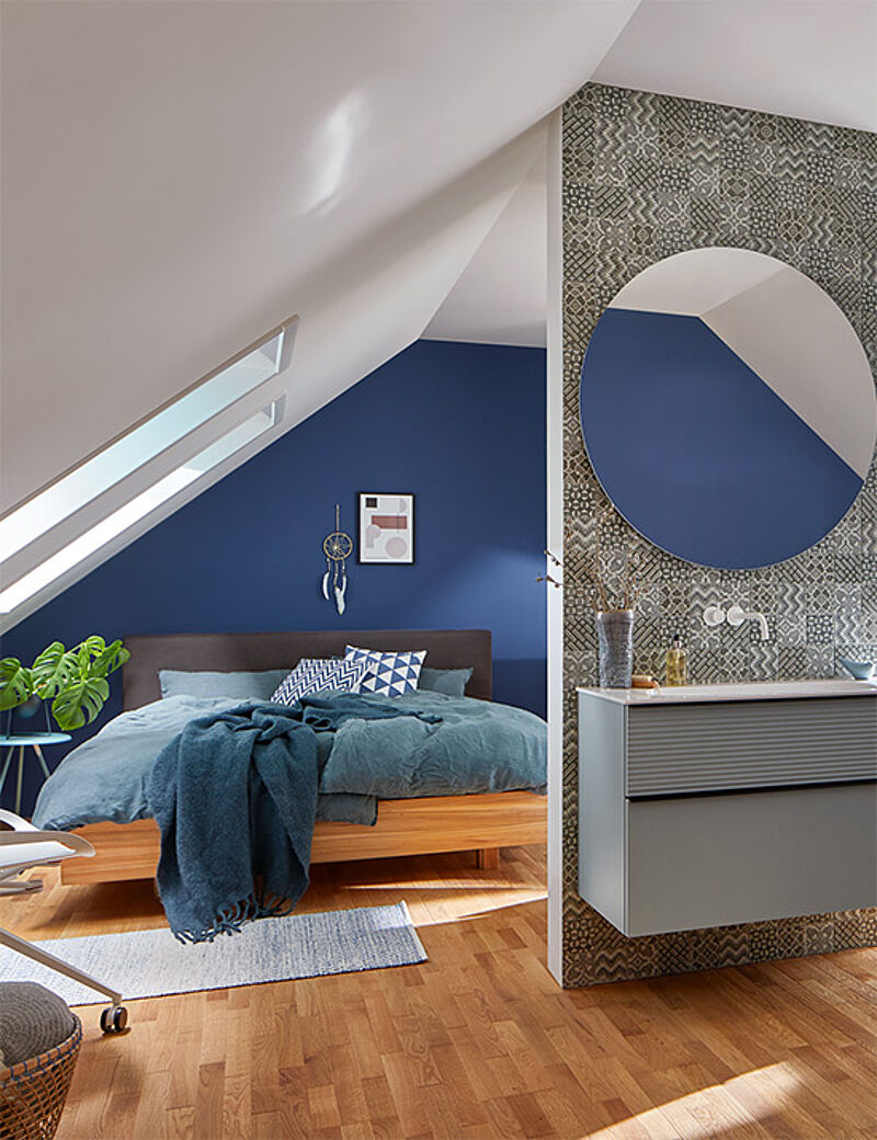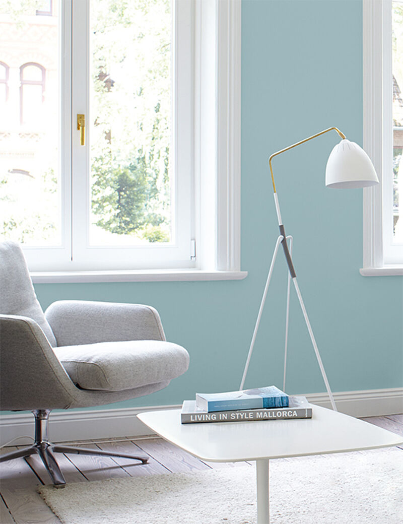 Übrigens: Einen ebenso zeitgemäßen und entspannenden, aber sanfteren Effekt erzielen Sie mit den schönen Alpina-Blautönen Stolzer Wellenreiter, Gletscherblau und Nordmeer.
