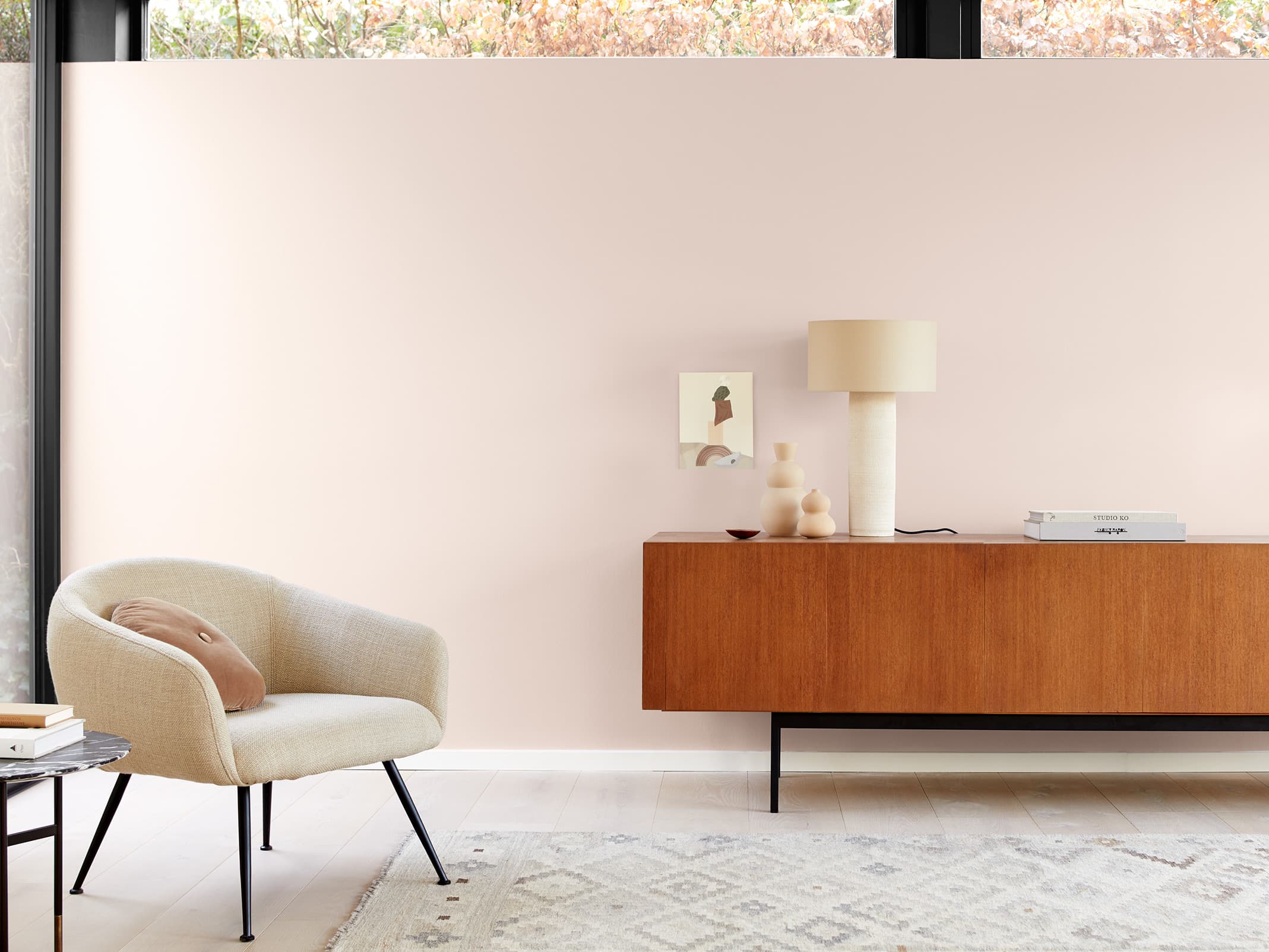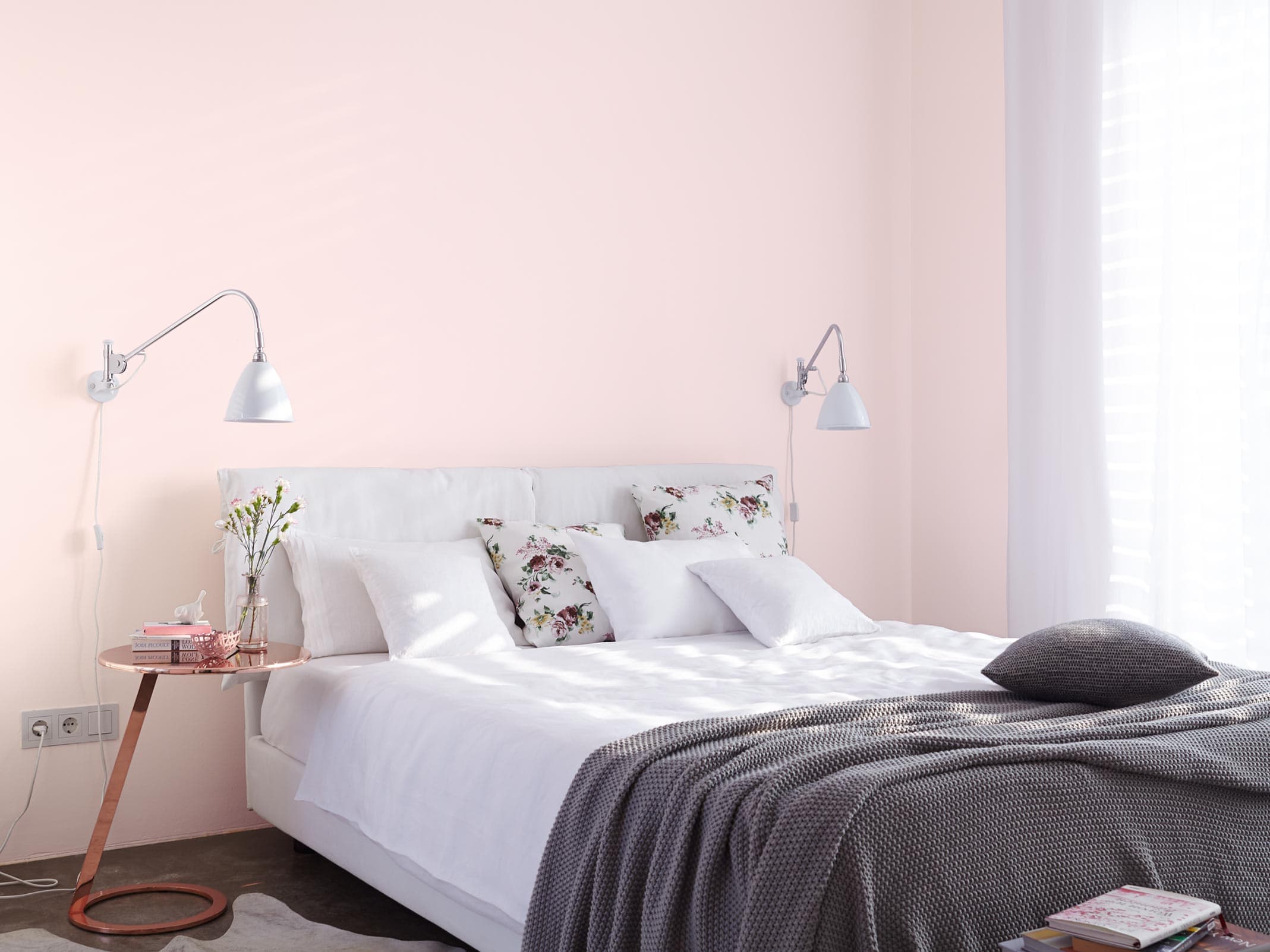 Dieser zarte Farbton offenbart seine raffinierte Wirkung nicht zuletzt durch die Wahl der Möbel und Wohnaccessoires. So zurückhaltend das edle Graurosa im Zusammenspiel mit hellen Naturtönen bleibt, so intensiv scheint es im Kontrast mit rötlichen Hölzern und schwarzen Metall-Elementen.