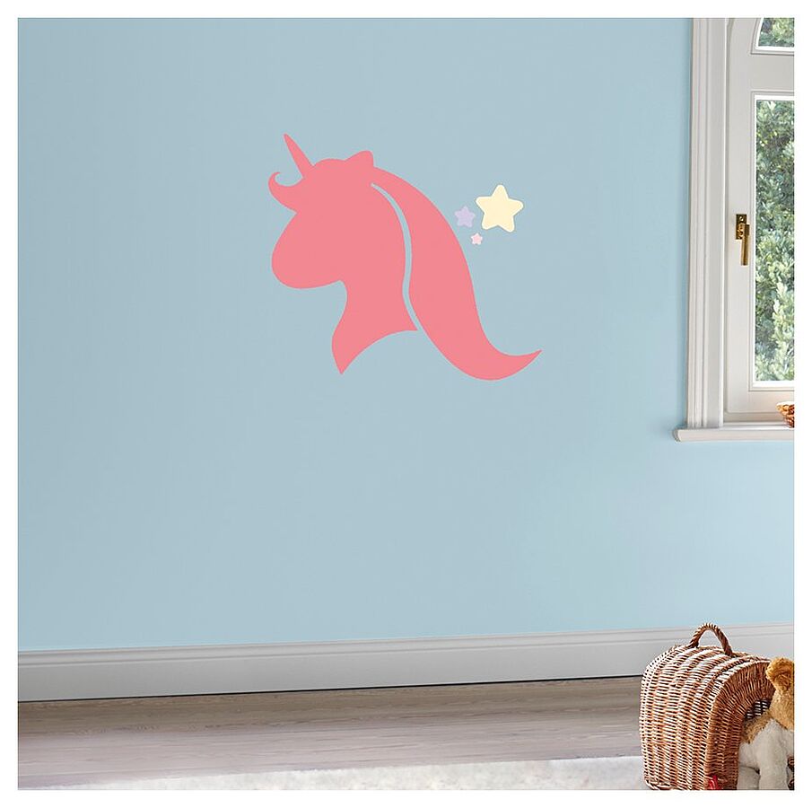 Haben Sie alles lückenlos ausgemalt, können Sie die Klebestreifen lösen und die Schablone vorsichtig von der Wand ablösen. Möchten Sie mehrere Einhörner auf die Wand malen, empfiehlt es sich mehrere Schablonen anzufertigen oder jeweils zu warten, bis die eine vollständig durchgetrocknet ist.