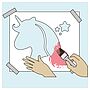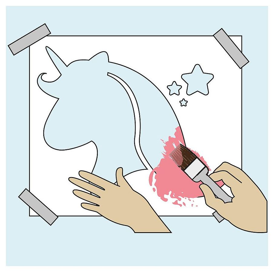 Wer es aber lieber bunt mag, kann die Aussparungen der Einhorn-Schablone auch in unterschiedlichen Farben gestalten.