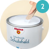Tragen Sie den Schutzhelden mit der Alpina Effekt-Bürste oder dem Alpina Roller einfach auf die Wand auf. Falls Sie die Bürste verwenden, entsteht eine leichte Struktur.