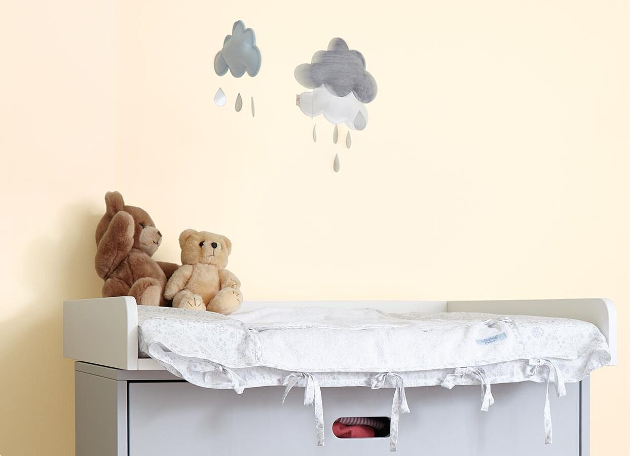 Hier kann auch mal was daneben gehen. Tragen Sie den Schutzhelden zum Beispiel in einem Quadrat hinter dem Wickeltisch auf.