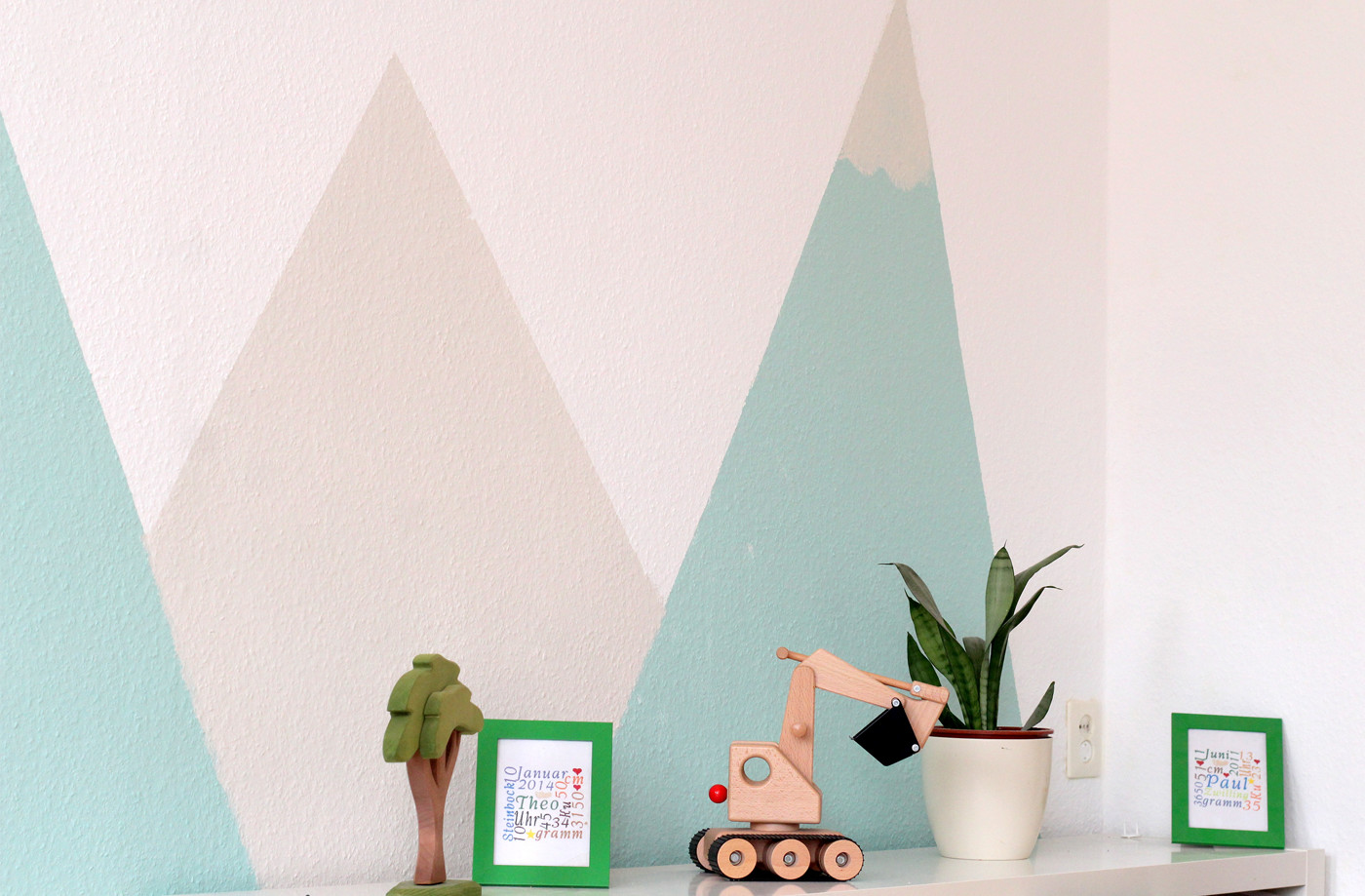 Für das Kinderzimmer wurde Geckogrün und Hamsterbeige ausgewählt. Damit sollte eine gelungene Mischung aus aktiven und ruhigen Bereichen erzeugt werden. Zudem fügen sich die beiden Farben perfekt mit unserem skandinavischen Einrichtungsstil zusammen: minimalistisch, ruhig und naturverbunden.