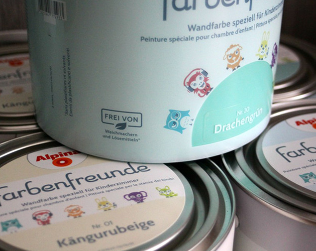Da ich das Zimmer ‚bewohnt‘ renovieren musste, war meine größte Sorge, dass es riecht. Unser Kleiner ist leider sehr anfällig gegen solche Reize und bekommt dann direkt einen Männerhusten. Das erste, was ich also machte, war daran zu riechen. Aber ich hab nichts gerochen. Nicht mal einen leichten Anflug von Farbe (unsere Fingermalfarbe stinkt im Gegensatz dazu). Die Alpina Farbenfreunde sind wirklich perfekt für Kinderzimmer. Nicht nur, dass die Kids theoretisch durch den Verzicht von Weichmachern die Wände ablecken könnten, auch sonst hat Alpina auf sämtliche gesundheitsdinge geachtet. Perfekt. (Es gab übrigens in der Renovierungszeit wirklich keine Hustenanfälle o. Ä.)