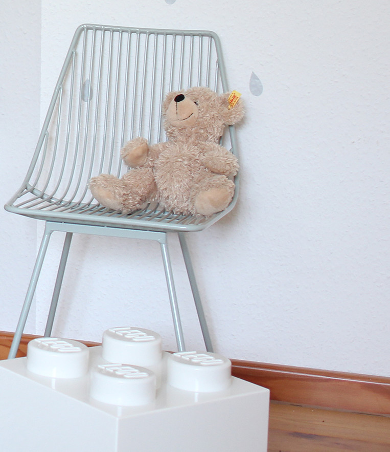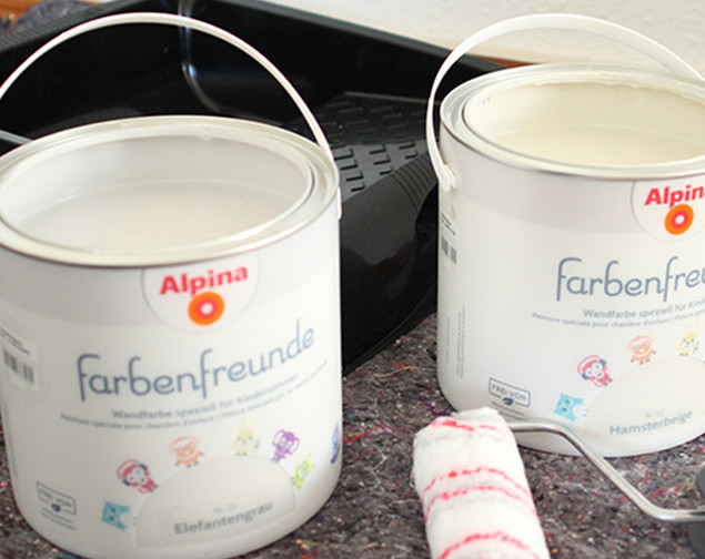 Wir haben uns für die Farbtöne Elefantengrau, Fischblau und Hamsterbeige entschieden. Die Mischung gefiel mir für das Malprojekt besonders, da sie zusammen schön leicht und freundlich wirken, aber nicht zu bunt sind. Bei uns sind die Wände momentan sehr dezent. Auch im Kinderzimmer gibt es viel Grau oder Beige. Ich finde es beruhigend bei all dem bunten Spielzeug. Die Farben sind leicht streichbar, geruchsneutral und absolut harmonisch in der Farbzusammenstellung. Die perfekte Farbe fürs Kinderzimmer.