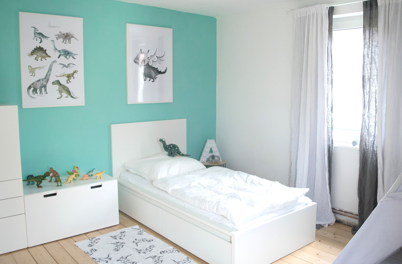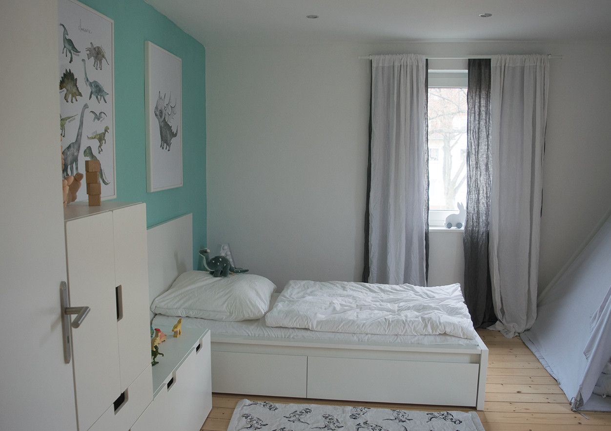 Mein Sohn ist jetzt genau 16 Monate alt und hat ein riesiges Spielparadies, nur für sich alleine. Für sein Zimmer habe ich mich für die Farbe Geckogrün entschieden, da sie in meinen Augen Ruhe und Geborgenheit ausstrahlt und gleichzeitig frisch und lebendig ist. Wir wollten von dem tristen Monochrom-Trend abschweifen und eine Farbe an die Wand bringen, die nicht jeder bei sich im Kinderzimmer hat. Ich liebe die gesamte Farbauswahl und die unübertroffene Qualität der Alpina Farbenfreunde Serie und empfehle sie jedem.