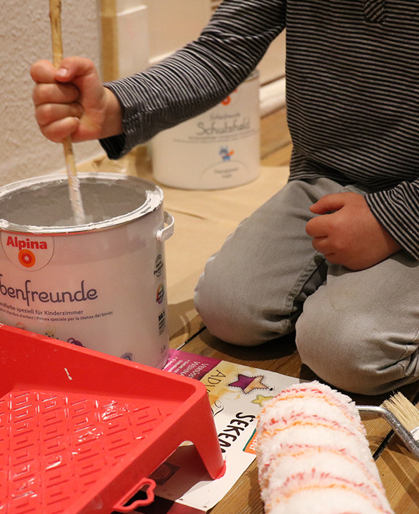 Die Alpina Farbenfreunde haben uns ziemlich überzeugt. Kleckert kaum, riecht kaum, ist sehr ergiebig und deckt perfekt beim ersten Anstrich.