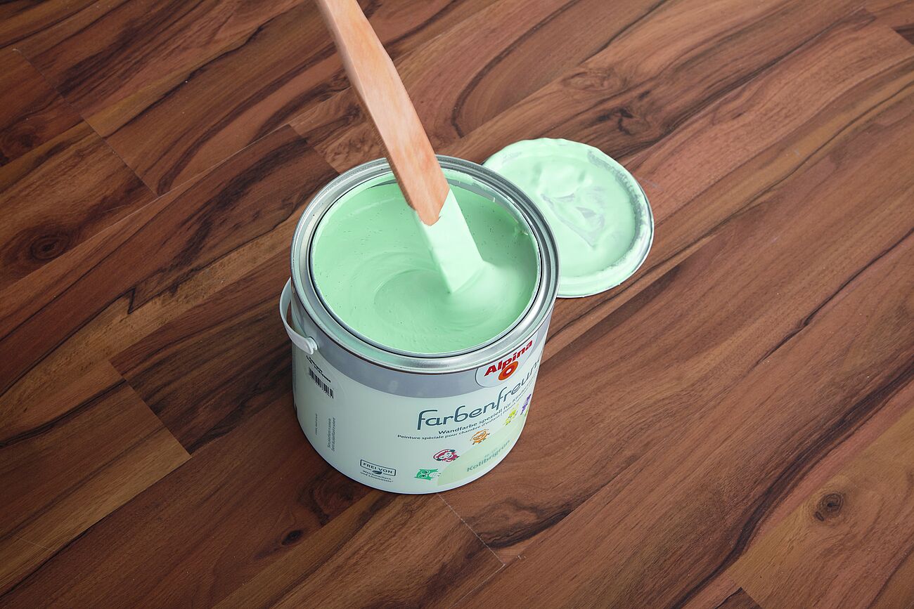Den Deckel der Farbdose vorsichtig mit dem Schraubendreher anheben und abnehmen. Vorsicht! Den Deckel nicht verbiegen, da er sonst nicht wieder luftdicht schließt.