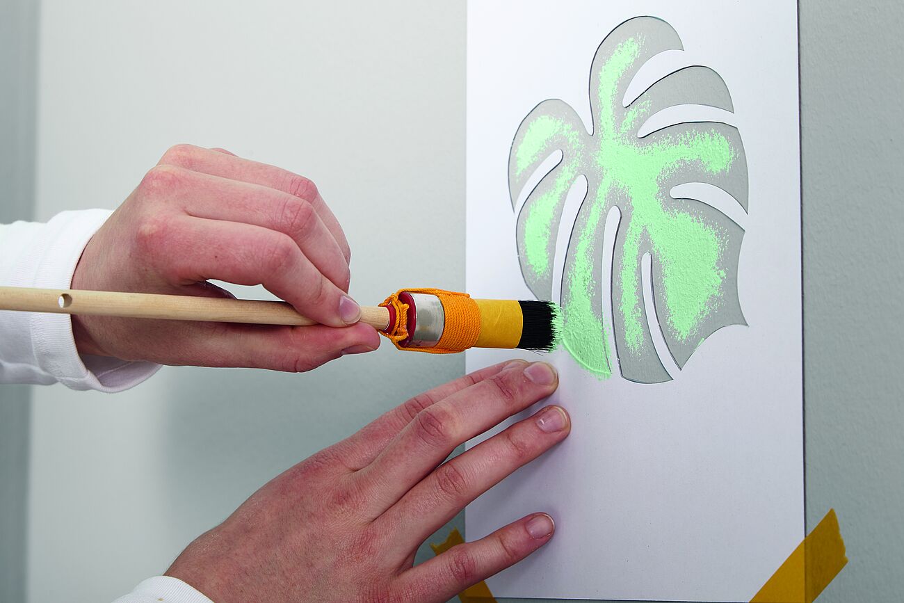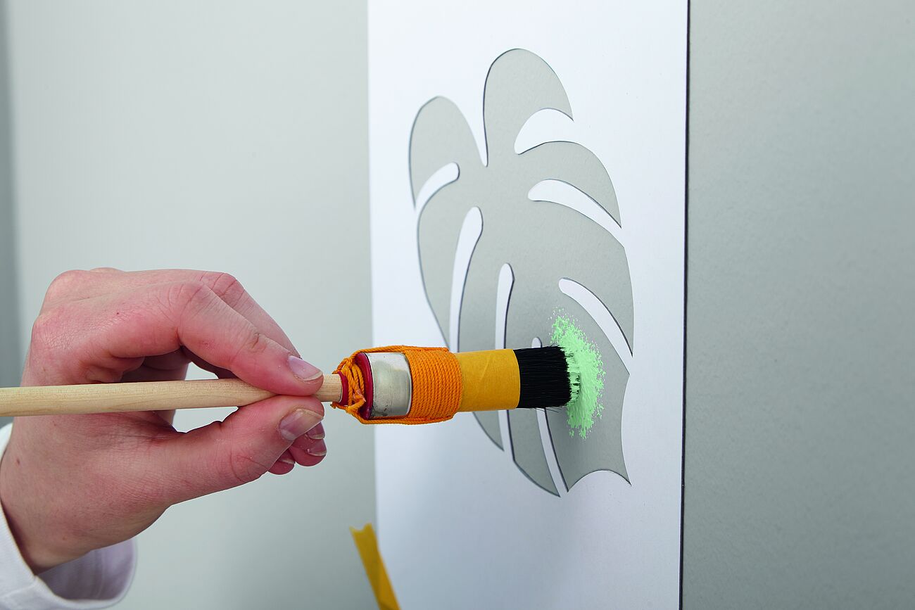 Sobald das Motiv vollständig aufgetupft wurde, die Schablone direkt vorsichtig von der Wand nehmen.
