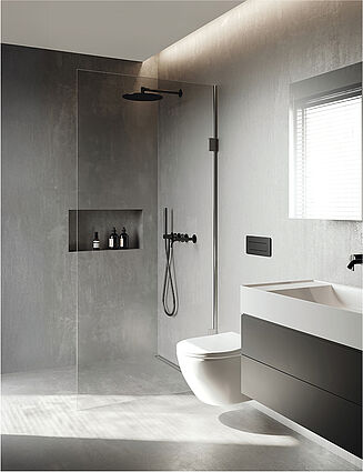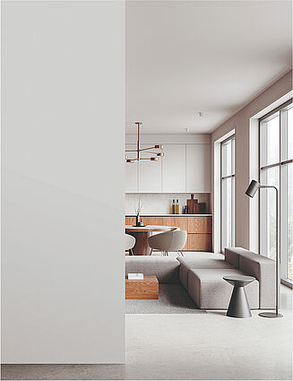 Erlebe das Alpina Mineral Beton Sortiment für markante, moderne Räume mit fugenlosen Oberflächen.