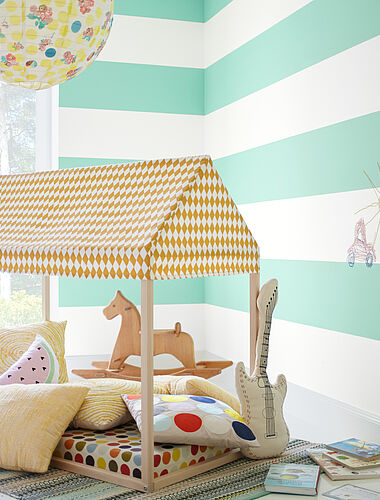 Schlummerhöhle, Spielparadies oder Lernwerkstatt – Kinderzimmer ist nicht gleich Kinderzimmer. Je nach Alter und Charakter hat der Nachwuchs die unterschiedlichsten Ansprüche an den Raum. Mit einer farbigen Wandgestaltung lassen sich die verschiedenen Funktionen noch unterstützen. Zarte Kontraste an der Wand können Säuglingen helfen, ihre Umwelt besser wahrzunehmen. Leichte Farbreize hingegen motivieren Kleinkinder zu mehr Kreativität. Blautöne laden zum Träumen und Abschalten ein, während Grüntöne bei Schulkindern die Konzentration fördern.