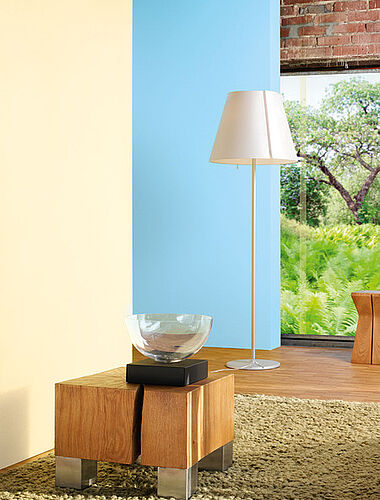 Die klare Leichtigkeit und der helle, sorglose Charakter von einem Hellblau wie Alpina „Luftschloss“ weitet und erfrischt Räume – er durchweht sie wie eine sanfte Briese. Die luftig-leichte Anmutung der Farbe lässt sich in der restlichen Raumgestaltung fortsetzen. Mit schwerelos wirkenden Möbelstücken aus Acrylglas und transparenten, durchscheinenden Stoffen schafft man ein harmonisches Gesamtbild.Klare, frische und federleichte Raumdüfte, die wie frisch gewaschene Wäsche oder die klare Luft an einem Frühlingsmorgen riechen, machen die Raumgestaltung komplett.