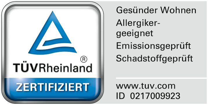 | Auszeichnungen | Blauer Engel, TÜV Rheinland, Qualitätssiegel Nachhaltiges Gebäude, AgBB, DIN EN 71-3 für Kinderspielzeuge |