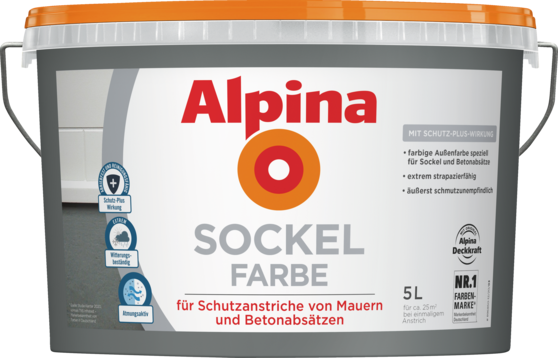 Alpina Sockelfarbe macht den Haussockel über viele Jahre wirkungsvoll wetterbeständig. Die wasserabweisende Wirkung schützt das Mauerwerk gegen eindringenden Regen. Gleichzeitig sorgt die Wasserdampfdurchlässigkeit der Farbe dafür, dass Feuchtigkeit aus der Mauer in die Luft entweichen kann. Zusätzlich bietet die sie eine hohe Schutzwirkung gegen aggressive Luftschadstoffe.